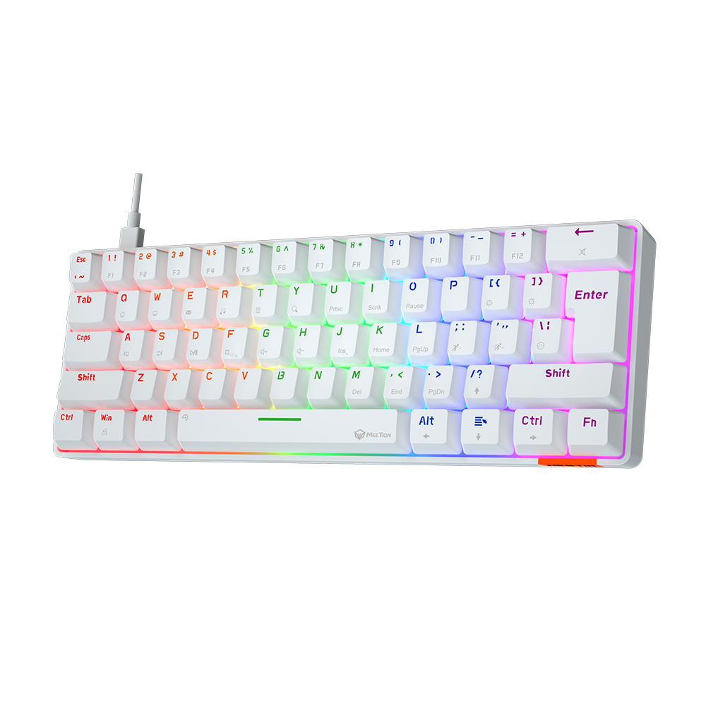60% mechanical gaming keyboard, with OUTEMU blue switch, the sound is crisp and the feedback is good. The ergonomic design can satisfy gamers' pursuit of hand feel and performance, greatly improve operation efficiency and ensure longer service life. Classic black and white 2 colors are optional, this keyboard can save your desktop space, whether you are a gamer or an office business person, this keyboard can well meet your daily needs, the LED background light can be switched at will, and has a humanity Customized functions, such as automatic definition of LED backlight, full-key anti-ghosting, 12 multimedia keys, etc. Standard USB cable 1.8 meters.
