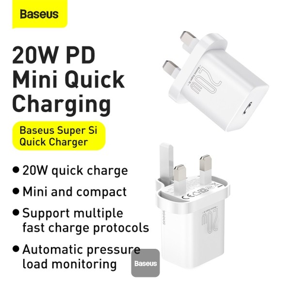 Baseus Super Si Quick Charger 20W with Type C to Lightning Cable (1 Meter)