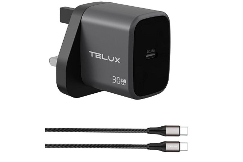 TELUX VOLTFLOW PD30-C GaN Fast Wall Charger with 60W USB-C Cable (1.2 Meters)